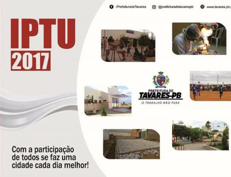 O Setor de Tributos prorrogou o prazo para o pagamento do IPTU 2017. O contribuinte que ainda não executou o pagamento pode aproveitar e pagar até o dia 29/12, tendo 30% de desconto. Para isso os contribuintes devem se dirigir ate o setor de tributos para emissao de um novo boleto com nova data de vencimento.