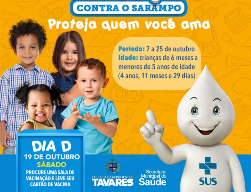 A partir das 8h deste sábado (19), as 07 salas de vacina da rede municipal de saúde estarão de portas abertas para receber as crianças de seis meses a menores de cinco anos que ainda não foram vacinadas ou que estão em atraso com alguma dose contra o sarampo.