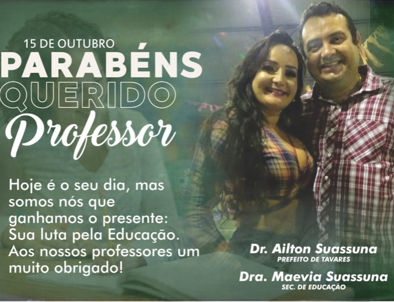 Neste dia tão especial, a Prefeitura Municipal de Tavares agradece, parabeniza e deseja a todos os Professores, muito sucesso, sabedoria, saúde para continuar desempenhando com a primazia de sempre o trabalho de educar.